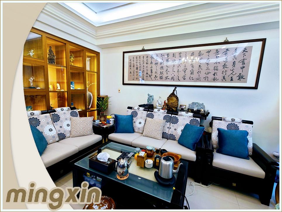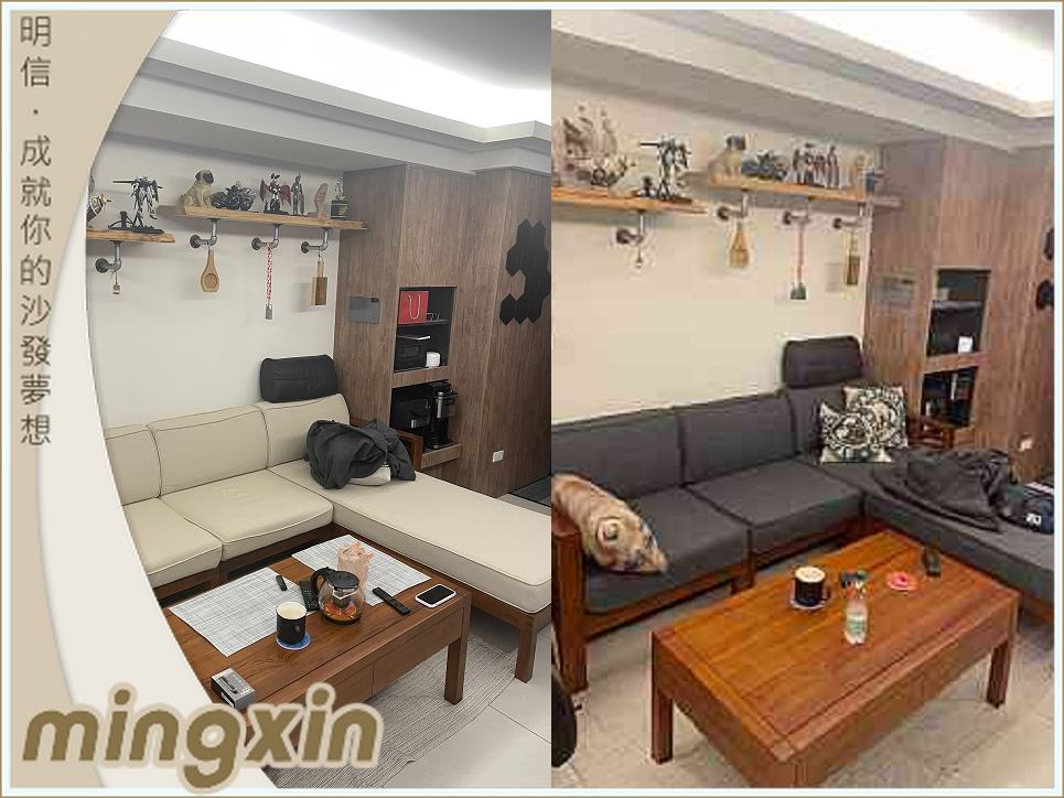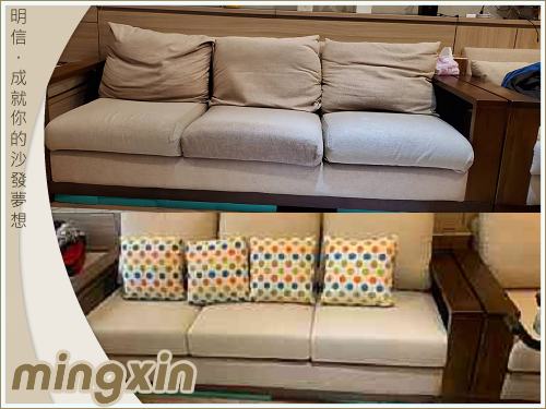協助原來沙發抱枕搭配設計.改為3人座3只大背墊(1人座沙發1只大背墊).沙發更顯簡潔.利落.