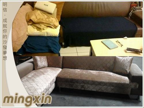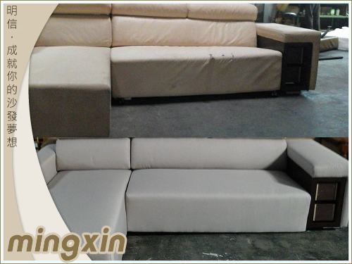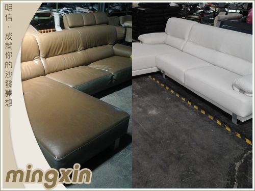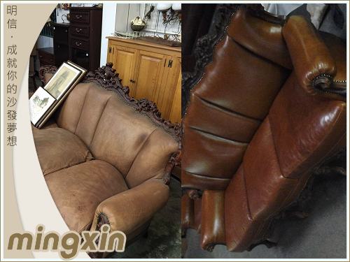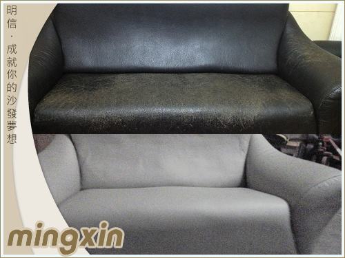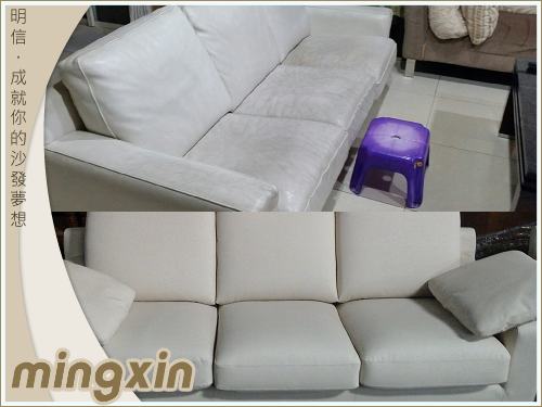 上圖為林先生原先的沙發.下圖則為換半牛皮後的成果圖