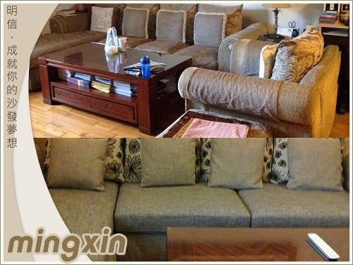 左圖為原先劉小姐家中的布沙發.右圖即為換布後的成果圖.灰色系列的搭配.是雙方仔細溝通.討論後的成果.是否猶如設計師的精心設計呢!