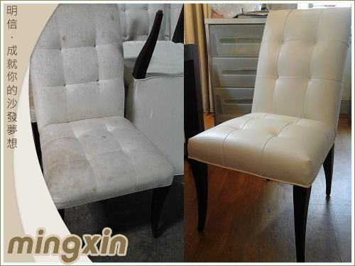 左圖為卓小姐家中的原先餐椅.右圖即為換皮後的成果圖.
