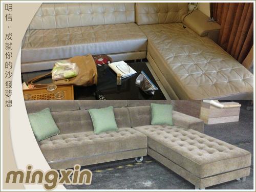 上圖為原先柔辰小姐的皮沙發.下圖則為換布後的成果圖.