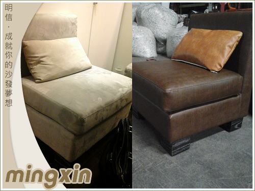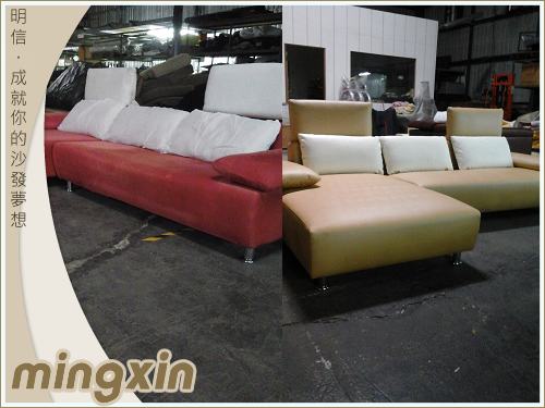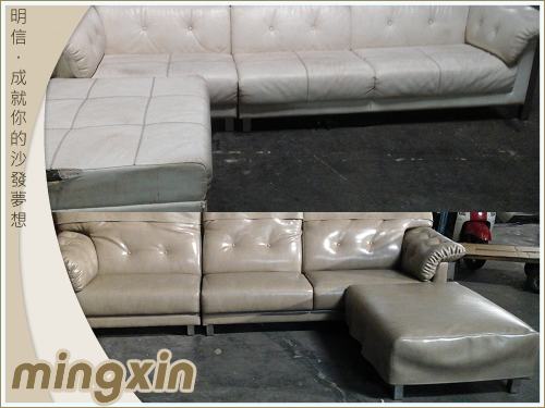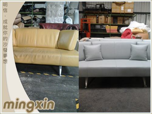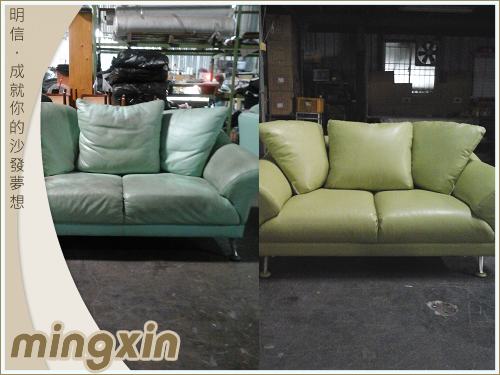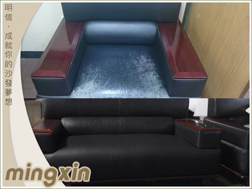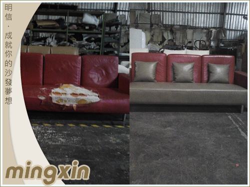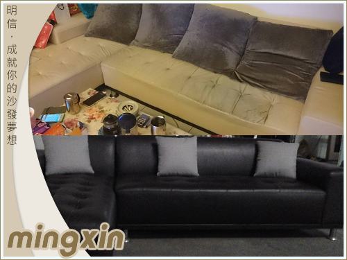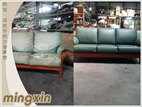 上圖為原本鄭小姐家中的皮沙發.坐了許多年.買的時候也不便宜.只因為皮革髒損.丟掉實在可惜.最重要的是骨架都還很完整.在經由報價後.最終還是選擇以維修換皮的方式替代購買新沙發.下圖則為換皮後的成果圖.沙發坐墊面我們幫鄭小姐更改為平面式.因為鄭小姐家中有養寵物.以避免狗狗拉扯.也幫鄭小姐多車縫了腳椅的皮套.避免狗狗又容易抓破.平日主人不在家時.把椅套蓋住.再怎麼抓都不怕囉!
