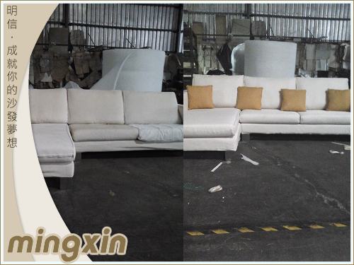 左圖為原先陳先生家中的L型布沙發.也是因為使用許久.髒損了.在經過多方報價與比較後.看了皮革的質料.最後還是委託我們施工.也經過一番溝通.選擇了這款具透氣效果的黃色超纖皮革.並搭配了白色皮革在腰枕的部分.右圖即為換皮後的成果圖.這樣沙發又可以使用七八年沒問題囉!