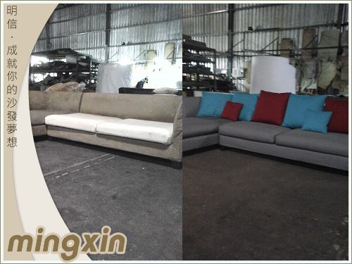 上圖為黃先生家中原先的皮沙發.也是坐久了.皮革髒損.而坐墊泡棉有些許的變形.這次黃先生想要換較深一點的顏色皮革.因此我們選擇了咖啡色系的皮革.而原本泡棉其實都還完整.只是座墊前方稍許塌陷.我們沒有更換泡棉.只是在座墊處加強墊高.解決了原先的問題.所以.每個人觀點不同.需求不同.在預算內.我們相信還是可以解決問題的!下圖則為換皮後的成果圖.我們幫黃先生搭配了灰色的淺色系抱枕.讓整組沙發看起來沉穩又不失活潑的感覺!
