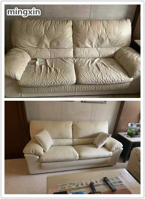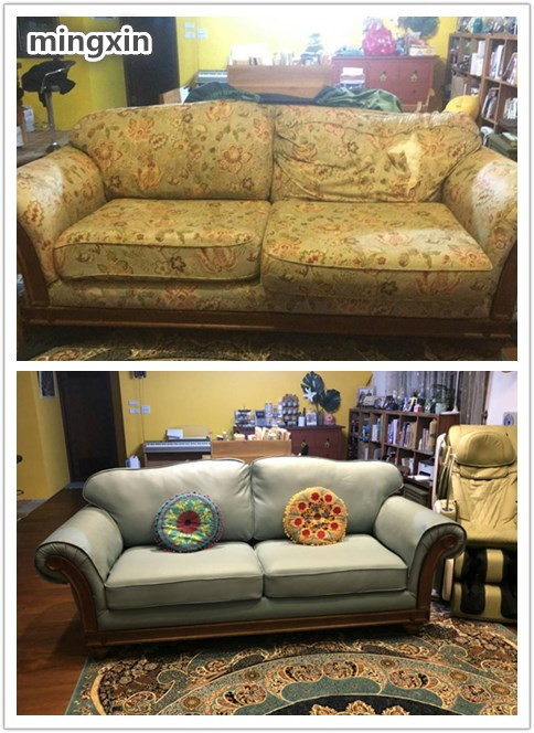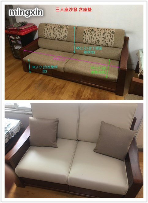 三人座沙發換半牛皮
